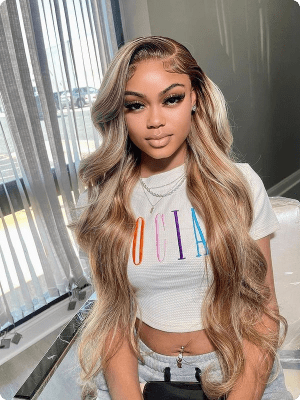 Blonde Balayage with Dark Roots Body Wave Customized Color for Black Women 13x4 Transparent Lace Frontal Human Hair Wig