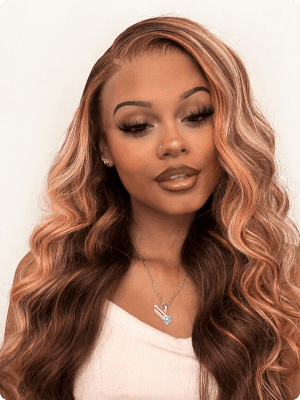 Blonde Highlight Put On & Go Silky Straight Glueless Beginner Friendly Ready to Wear Wig Pre Plucked Hairline & Bleached Knots